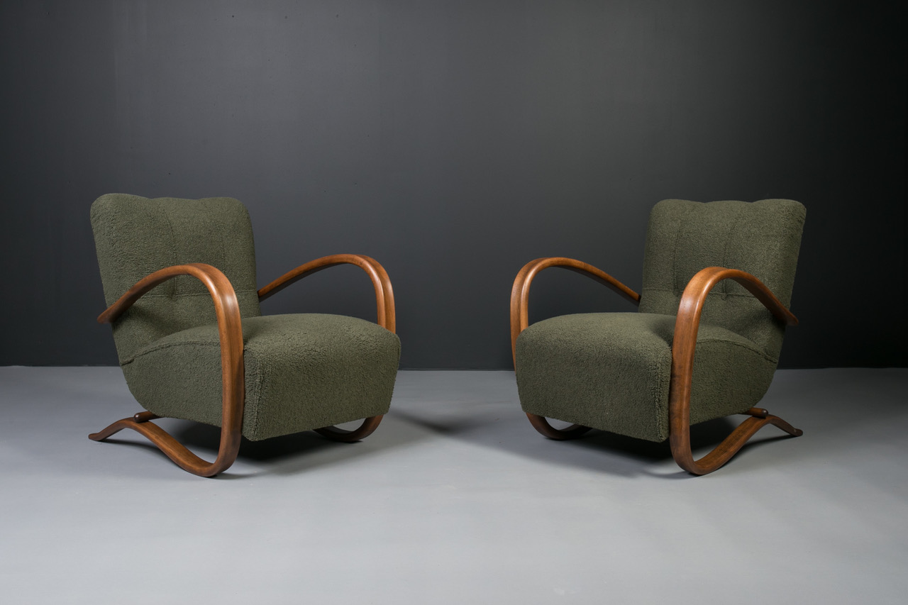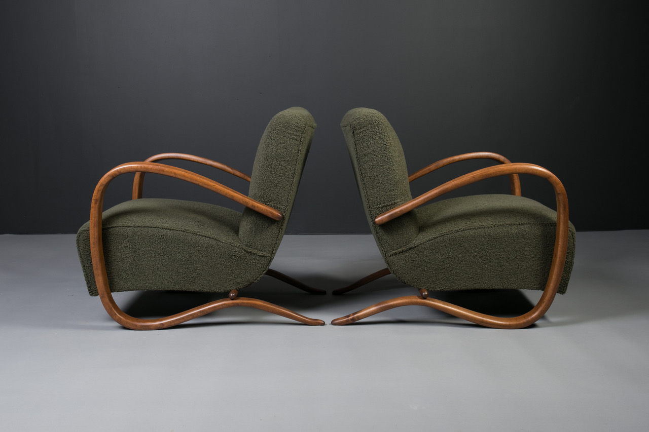 Rare set of two Art Deco armchairs designed by the renowned Czech designer Jindřich Halabala in the 1930s in Czechoslovakia. One of his most iconic models — H269.