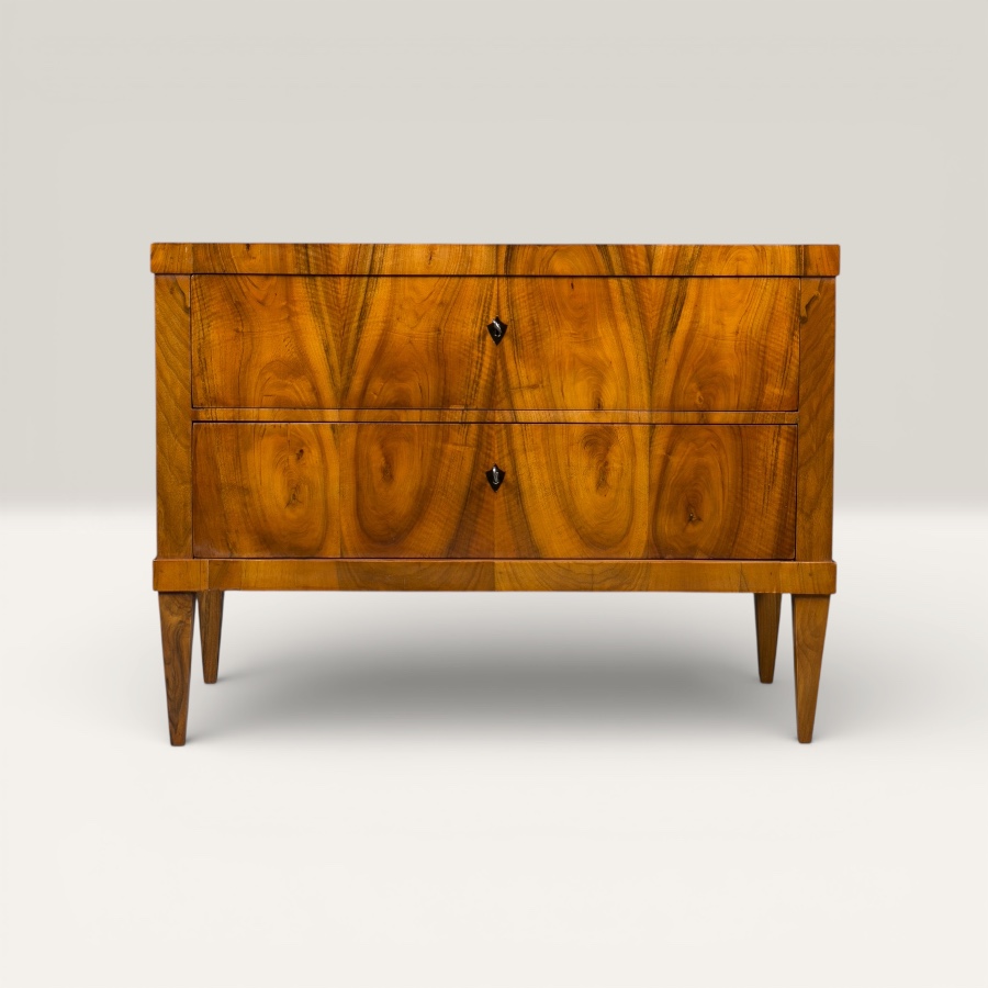 A beautifully proportioned 19th-century German chest of drawers, veneered in walnut and representing the classic Biedermeier style.