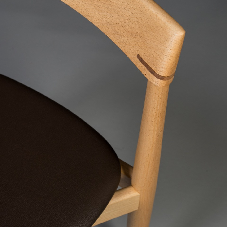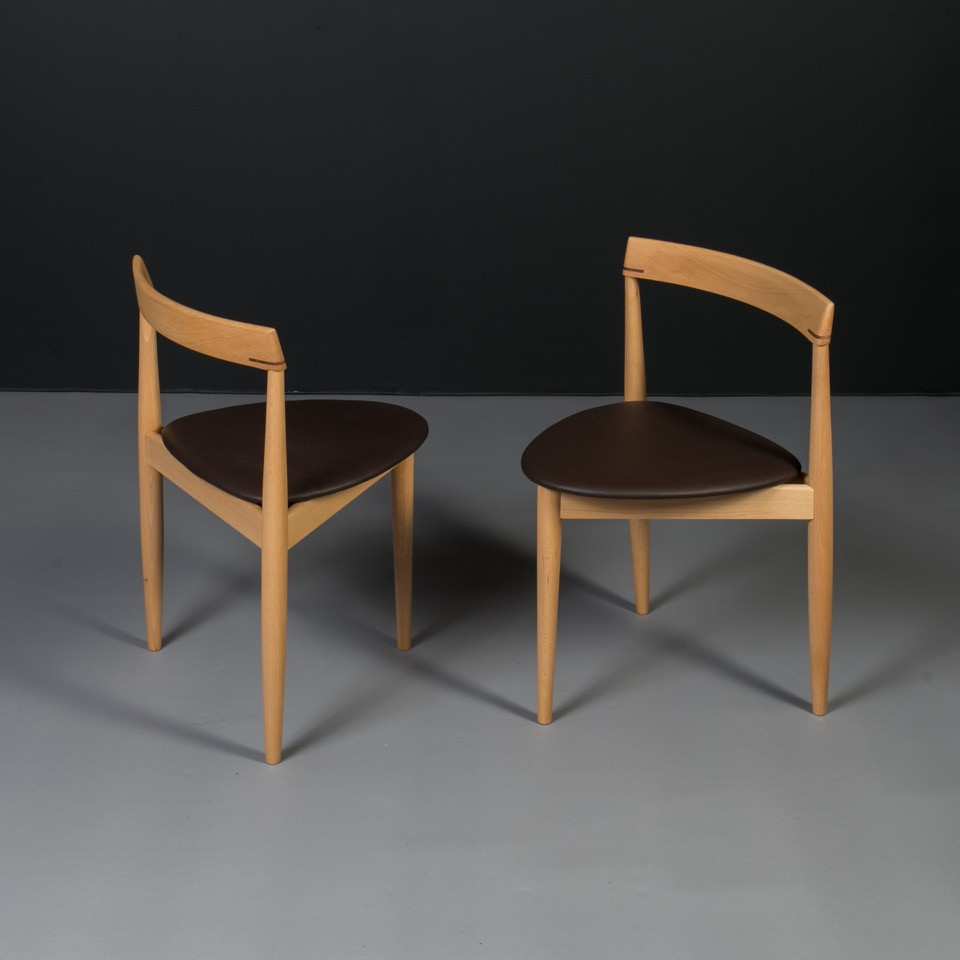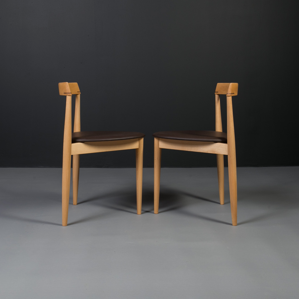 All wooden elements have been carefully cleaned and refinished using high-quality wood oil, enhancing the natural grain while providing long-lasting protection. The seats have been newly reupholstered in chocolate brown leather.
