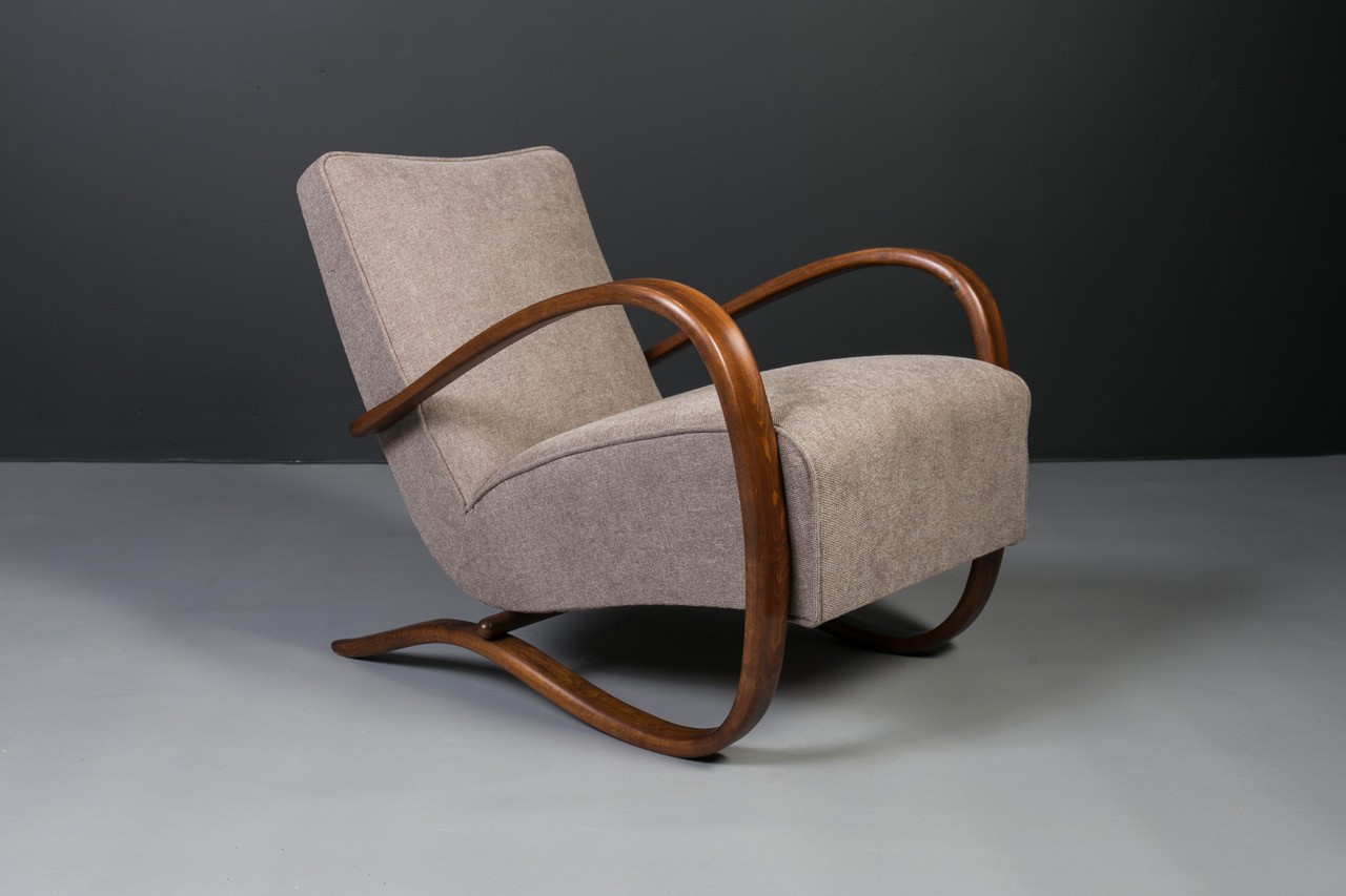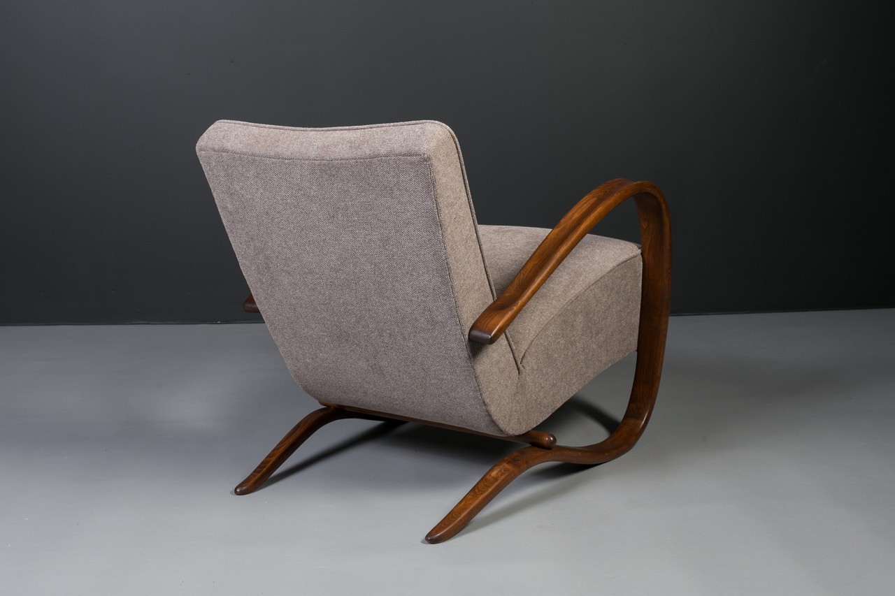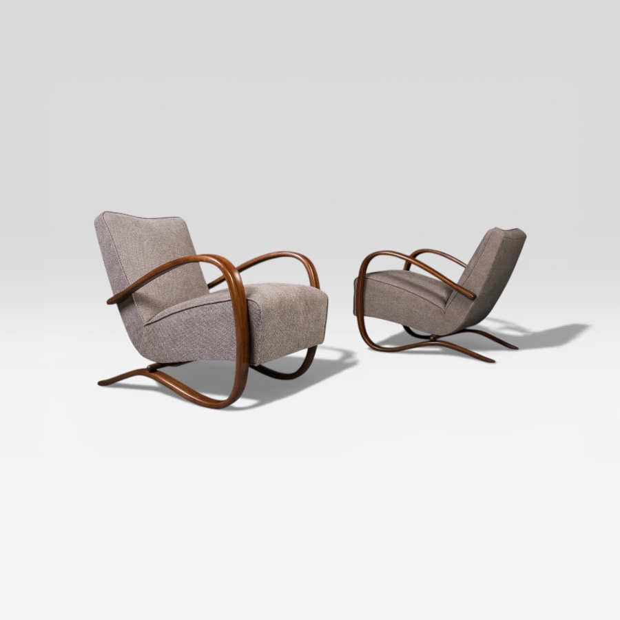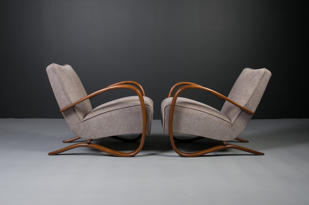 Set of two rare Art Deco armchairs designed by the renowned Czech designer Jindrich Halabala in the 1930s in former Czechoslovakia. One of his most iconic and recognizable models – H269.