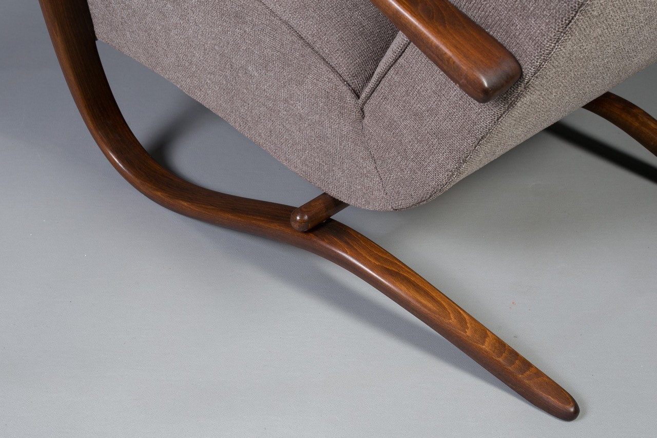 Their bent beechwood construction highlights the exceptional craftsmanship of Czech interwar furniture making. Wooden elements were carefully cleaned and refinished with oil, giving them a natural and elegant appearance.